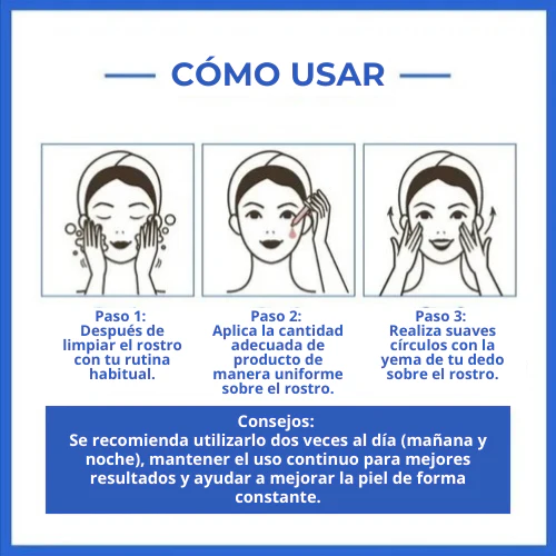 Aplica 3-4 gotas del suero sobre la piel ligeramente húmeda.
